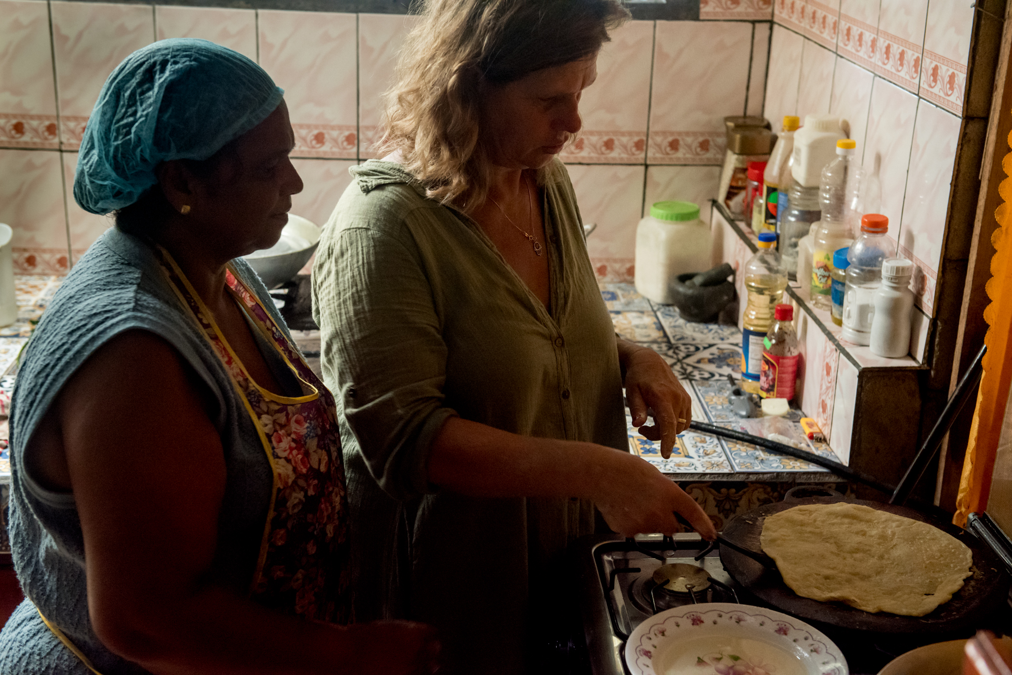 Ik ben Hindoe van geloof. Het is een mooi geloof. We zijn elke donderdag vegetarisch. Als ik gasten heb kook ik wel gewoon voor hen. Wij eten dan zelf niet mee. Ik weet dan alleen niet hoe het smaakt, want ik kan het niet proeven, maar de gasten vinden het altijd heel lekker.