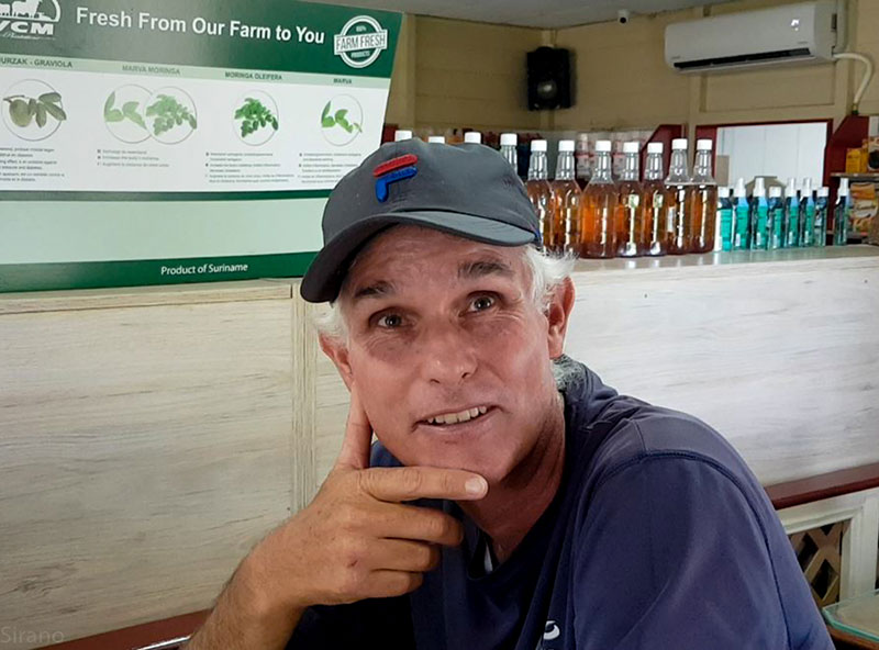 Hij is hier in ‘Rust en Werk’ geboren. Ik weet niet precies in welk jaar, maar zijn vader verkocht vroeger nog olie uit kannetjes en flesjes aan de mensen die aan de rechteroever van de Commewijnerivier woonden.